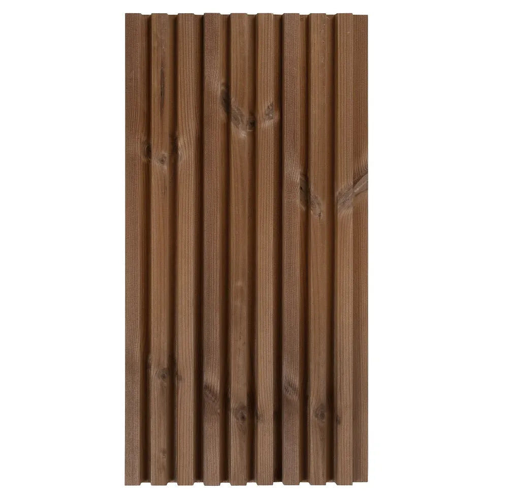 sofistikovaný drevený obklad s 3D efektom na pokrytie fasád, stien a stropov v exteriéri, saune aj v interiéri. Drevené obklady z materiálu ThermoWood® sú vysoko odolné a schopné 30 ročnej životnosti bez potreby napúšťania chemickými prípravkami, pretože tepelná úprava zvyšuje odolnosť dreva pred drevokazným hmyzom, plesňou a hubami. Obklady z dreva ThermoWood® sa môžu používať aj bez povrchovej úpravy, kedy získajú prírodnú striebornú patinu povrchu.