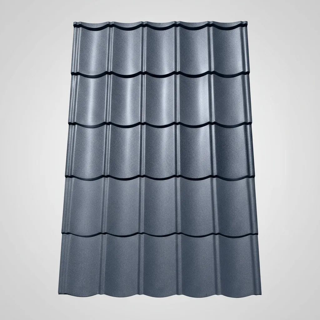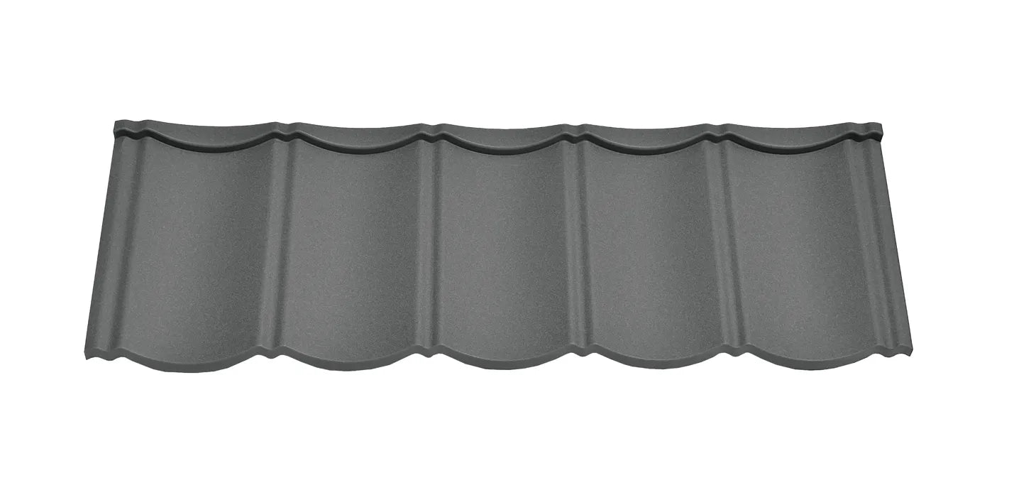 Klasický tvar škridiel v ľahkej modernizovanej podobe – hmotnosť len 4,7 kg/m² vďaka kvalitnému lakoplastovanému plechu hrúbky 0,5 mm.