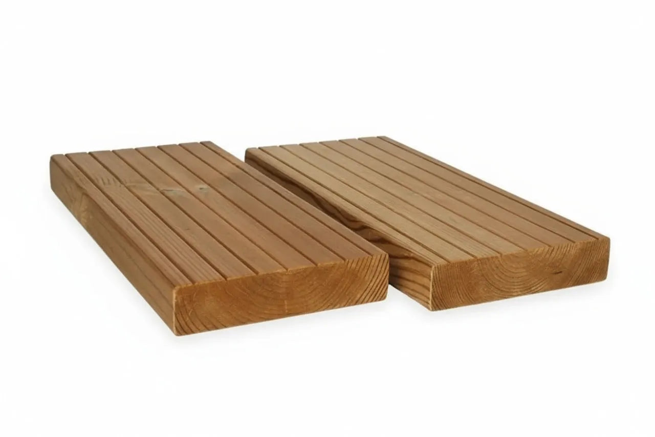 elegantná terasová doska vyrobená z tepelne ošetrenej borovice ThermoWood®. Táto doska je vhodná na vonkajšie použitie - aj ako drevená terasa okolo bazéna. Vyznačuje sa výbornou rozmerovou stabilitou - nekrúti sa, a zvýšenou odolnosťou proti poveternostným vplyvom, škodcom a hnilobe. Životnosť tepelne ošetreného dreva je až do 30 rokov v exteriéri.