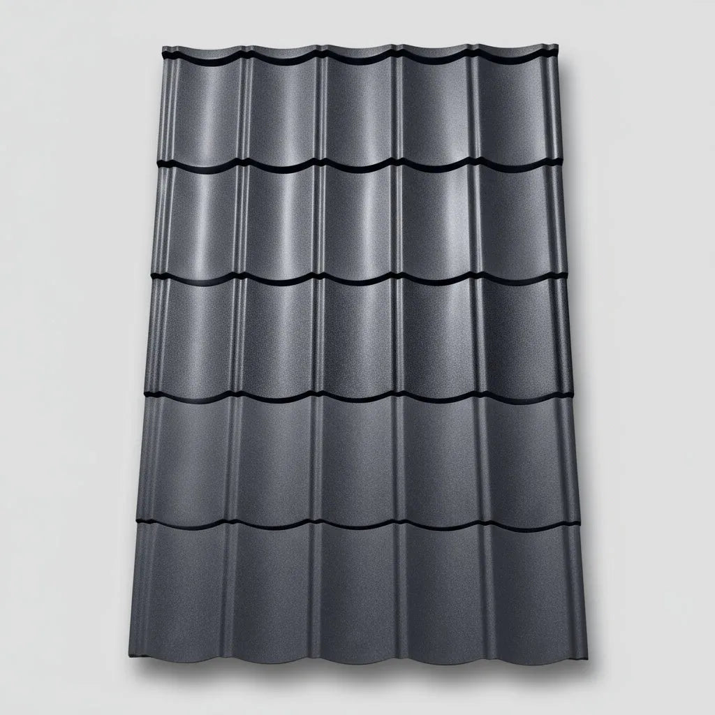 Klasický tvar škridiel v ľahkej modernizovanej podobe – hmotnosť len 4,7 kg/m² vďaka kvalitnému lakoplastovanému plechu hrúbky 0,5 mm.